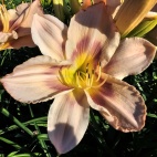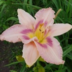 Dārzā labi pamanāma liela auguma šķirne, liels, maigi rozā zieds ar tumši rozā gredzenu, krokotu apmalīti.